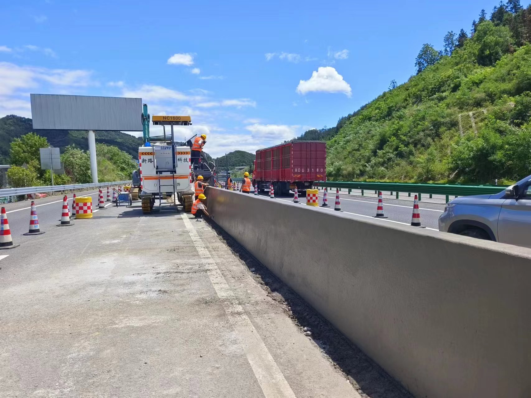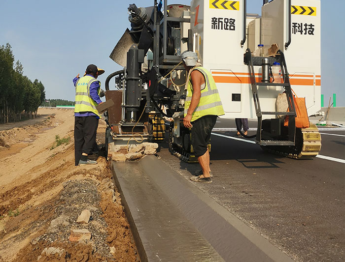 NC1300路緣石滑模機(jī)-山西晉城G207國(guó)道防撞護(hù)欄滑模攤鋪工程